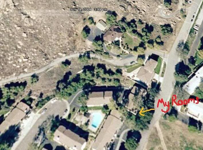 You might also see, if you press your nose up against the monitor, that there is a hill on one side of the condom-inyum and a large, empty field on the other. To the north is a retired guy who keeps an eye on things, and to the left is whoTF knows, but they didn't make any noise while I was there, so for now they're just fine by me.